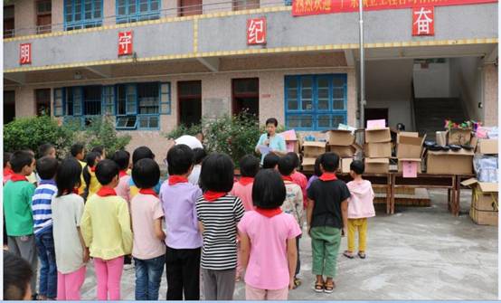 早上九点,我们带着一如既往的初心从公司楼下出发, 从广州前往肇庆广宁县石咀镇。经过连续不断的蜿蜒山路,三个多小时后我们到达了石咀镇。石咀镇,这个我们来了三年的地方,感觉是那么的熟悉,从镇上到周围的村庄都能看到小学生的身影。为了不打扰学生休息,我们选择下午14:00到达建中小学。此时已经有学生陆续返校,见我们到来,学生们打开了校门,不约而同喊着“欢迎欢迎”,脸上洋溢着欢欣的笑容。建中村委、建中小学的校长、老师以石咀镇中心小学校长及副校长及学生们已集中等候,公司购买的打印机、书包、校服、体育用品、学习文具以及图书均摆放在教室门口的红旗下。根据学校的安排,现场举办了简单而有意义的捐赠仪式,为感谢公司的捐助,校长还赠送了 “大爱无疆,捐资助学” 的锦旗。